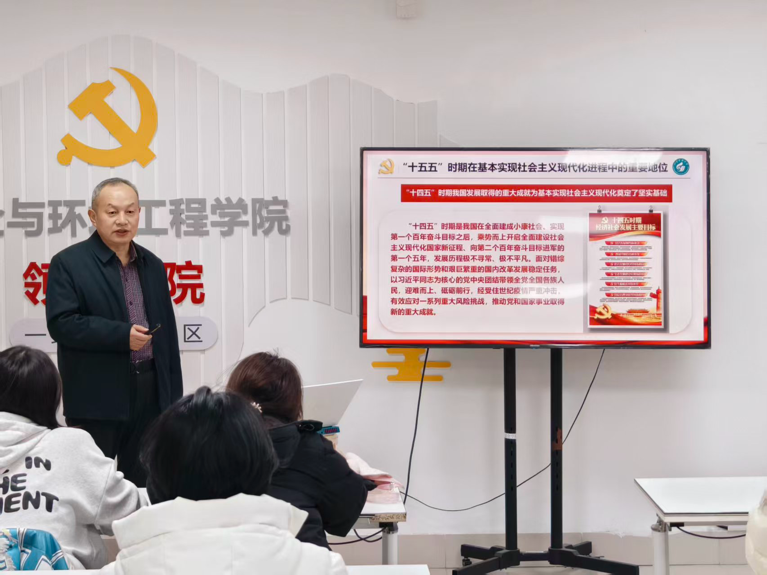 为精准传达党的二十届四中全会关于“十五五”时期发展的战略部署,推动全会精神与青年成长、专业发展深度融合,1月6日,安全学院党委书记张恩生走进环境工程2024级2班,以“解读‘十五五’规划,勇担生态环保使命”为主题开展专题宣讲。张恩生深入阐释了党的二十届四中全会召开的重大意义。他指出,全会是在向第二个百年奋斗目标进军的新征程上举行的一次十分重要的会议,审议通过的《中共中央关于制定国民经济和社会发展第十五...