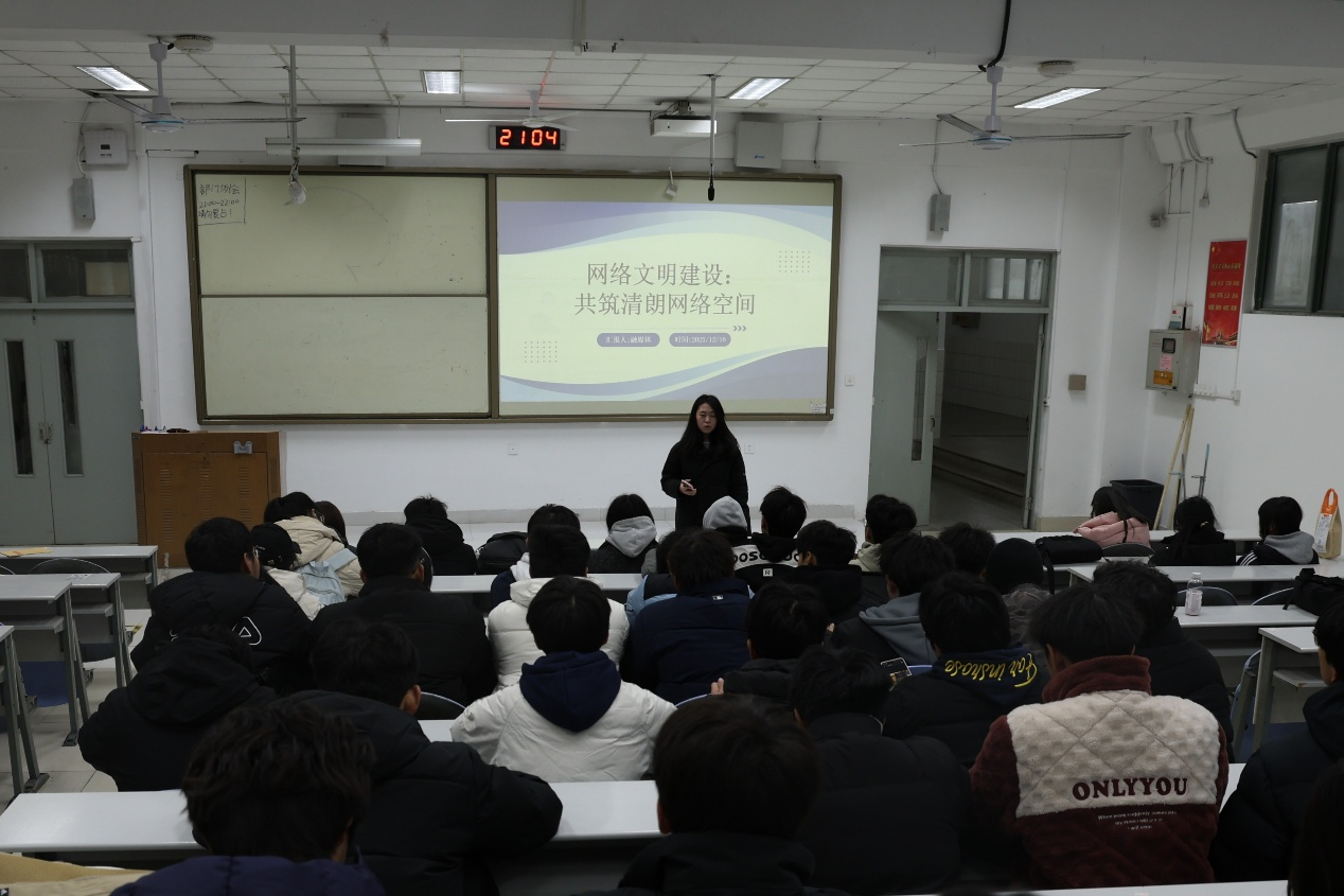 培训内容紧贴学生实际,融媒体中心负责人围绕网络谣言辨别、网络行为规范、个人信息保护等关键议题,结合典型案例进行了生动讲解,帮助同学们认清网络风险,增强法律意识和媒介素养。同时也强调,网络空间是亿万民众共同的精神家园,大学生作为网络空间最活跃的群体,理应成为清朗网络空间的坚定维护者和积极建设者,勉励同学们要“明辨是非,筑牢思想‘防火墙’;恪守底线,当好秩序‘维护者’;积极发声,传播青春‘正能量’”,将培训所学转化为日常网络行为的自觉规范。在交流环节,同学们就日常上网遇到的具体问题进行了讨论。现场还发起了文明上网倡议,同学们积极响应,承诺将从自身做起,传播正能量。