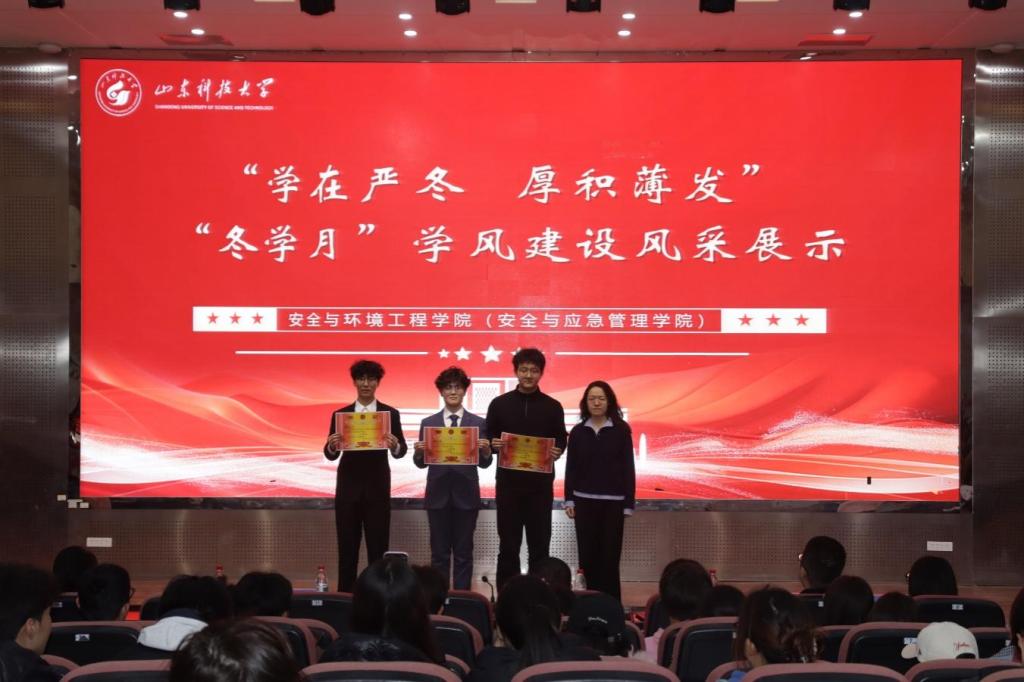 点击:为进一步巩固学风建设成果,营造积极向上的学习氛围,明确新学期学习发展方向,3月17日,安全学院于J9-144报告厅举办“学在严冬,厚积薄发”“冬学月”学风建设风采展示活动。安全学院党委副书记兼副院长王建友,团委书记张娜,团委老师冷冬阳、李翊尘、刘雨池、王雪霏、居硕、张博雅出席。
