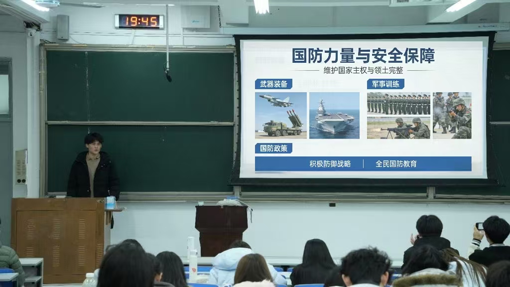 课程以“理论讲解+案例剖析”为形式,核心内容涵盖三大模块:一是阐释国防的定义、本质与基本类型,结合历史案例说明其对国家主权、民生安全的保障作用;二是解读我国独立自主的和平国防政策,分析政策与国家发展战略、国际安全形势的适配性;三是介绍航母、隐形战机等现代国防装备发展成果,展现国防科技实力的提升。同时,课程穿插当代国防与青年责任的关联分析,让抽象知识更贴近学生认知。