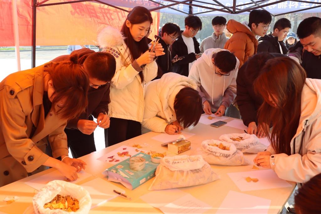 11月22日,安全学院心理健康联合会于繁星广场举办“拾叶拼自我”自然美学心理轻体验活动。活动以树叶为创作材料,采用“无压力拼贴”形式,鼓励同学们将美好记忆与情绪状态通过拼贴画进行表达,并标注关键词如“开心”“成长”等,实现情绪释放与自我探索。