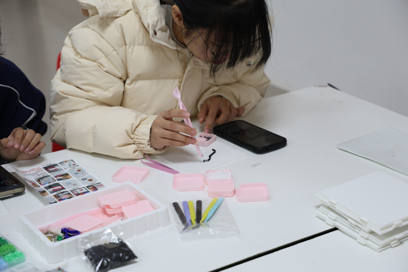 11月9日,安全学院融媒体中心于GC4领才书院组织开展“指尖匠心,治愈时光”手工活动。活动以拼豆与钻石画为载体,引导同学们在沉浸式手工体验中提升专注力、激发创造力。同学们通过色彩搭配与细致工序,创作出一个个生动图案与唯美画面,在指尖流转中舒缓压力、收获成就感。