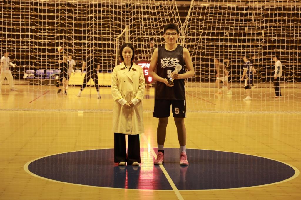 2024级安全工程队的刘高志在比赛中表现优异,获得最佳球员奖,张娜为其颁奖。团委老师李翊尘、满天雷、冷冬阳分别为冠军、亚军、季军颁奖。